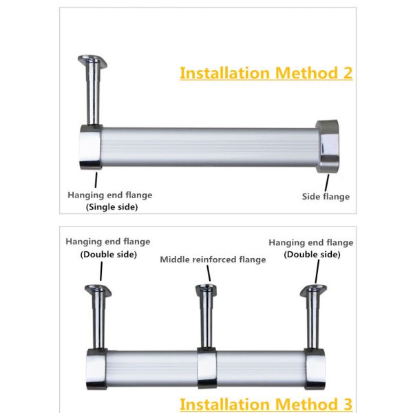 2. Easy to use: Flanges Socket Suitable for pipe diameter: 15mm /0.6inch; Suitable for all standard 15 x 30mm/ 0.59 x 1.18 inch oval bars; You can set a pipe lever on the bracket and then hang the clothes on the lever.
